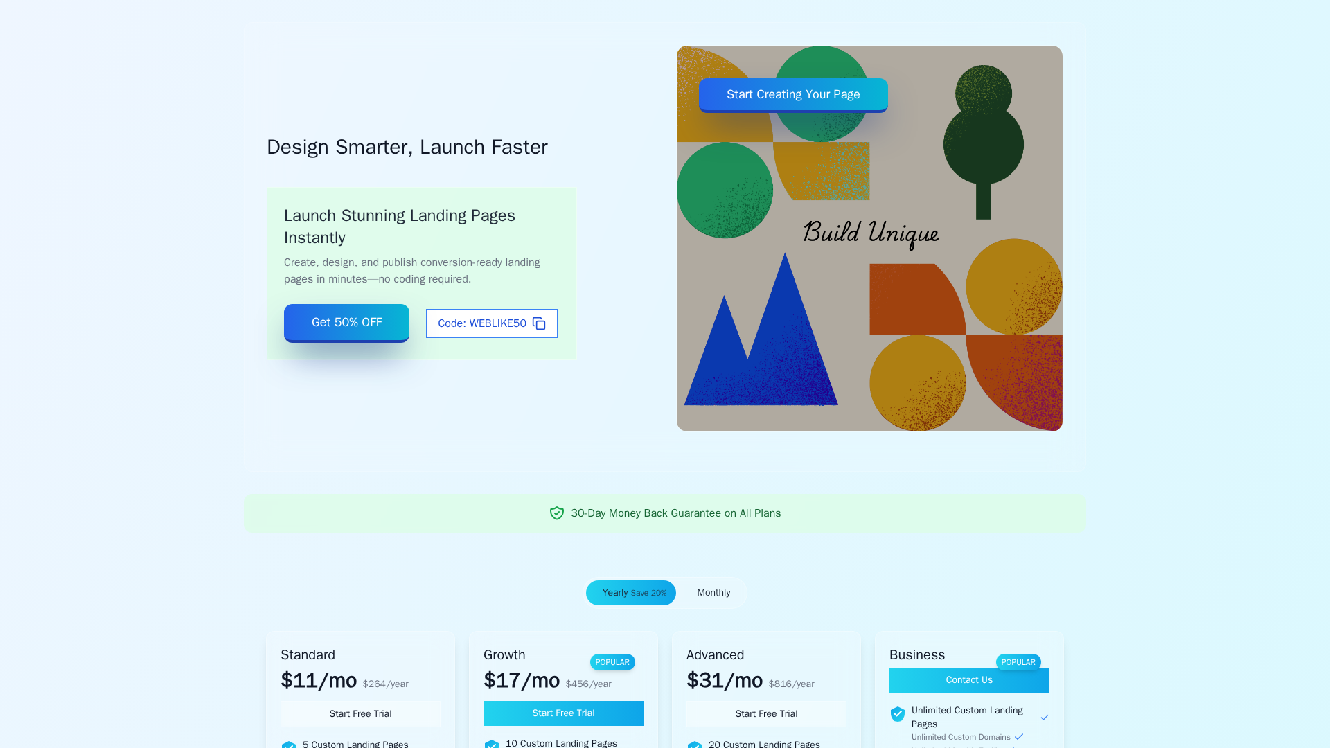 - ✓20 Custom Landing Pages