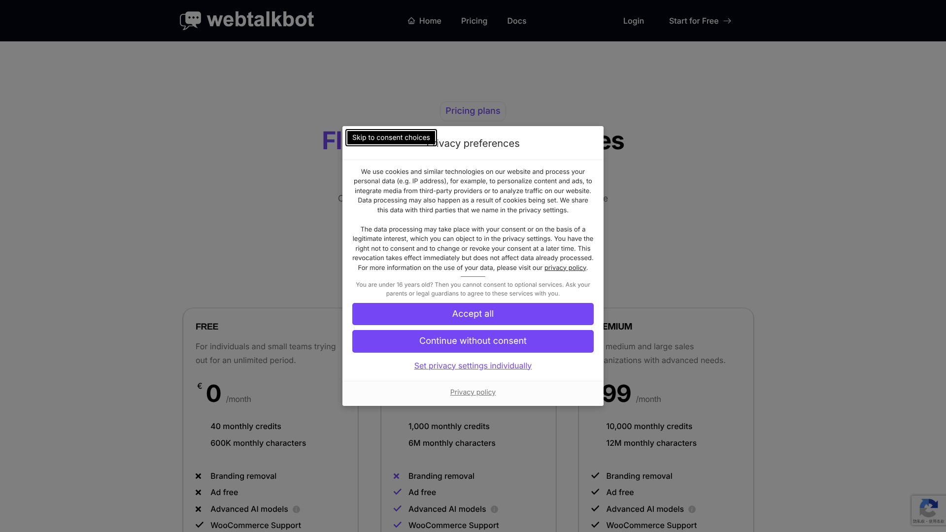 Control look-and-feel (colors, logos), welcome messages, and privacy notices; option to remove WebTalkBot branding.