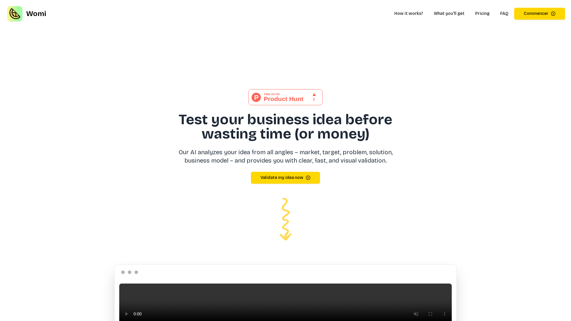 Womi is an AI-powered idea validation tool that takes a short idea or intuition and synthesizes output from multiple perspectives—business strategist, product expert, marketer, and investor—into a structured, actionable report. It guides you through audience and market segments, market size and dynamics, and market maturity; it identifies the problem you are solving and presents an adapted solution. It also outlines a viable business model with pricing and monetization options and offers acquisition strategy recommendations across channels such as SEO, partnerships, content, and communities. The report highlights a unique value proposition, maps competition and alternatives, and flags limitations and risks, with a Global Validation Score that aggregates coherence, problem relevance, business model solidity and market maturity. Womi can generate multiple versions or angles to compare niches or alternate approaches, and the final reports are designed to be ready-to-use and actionable, not just brainstorming. Pricing shown includes a free Discovery plan and several one-time bundles (€29, €39, €49), with no recurring subscriptions, though some pages may be temporarily unavailable (404) on dedicated sections.