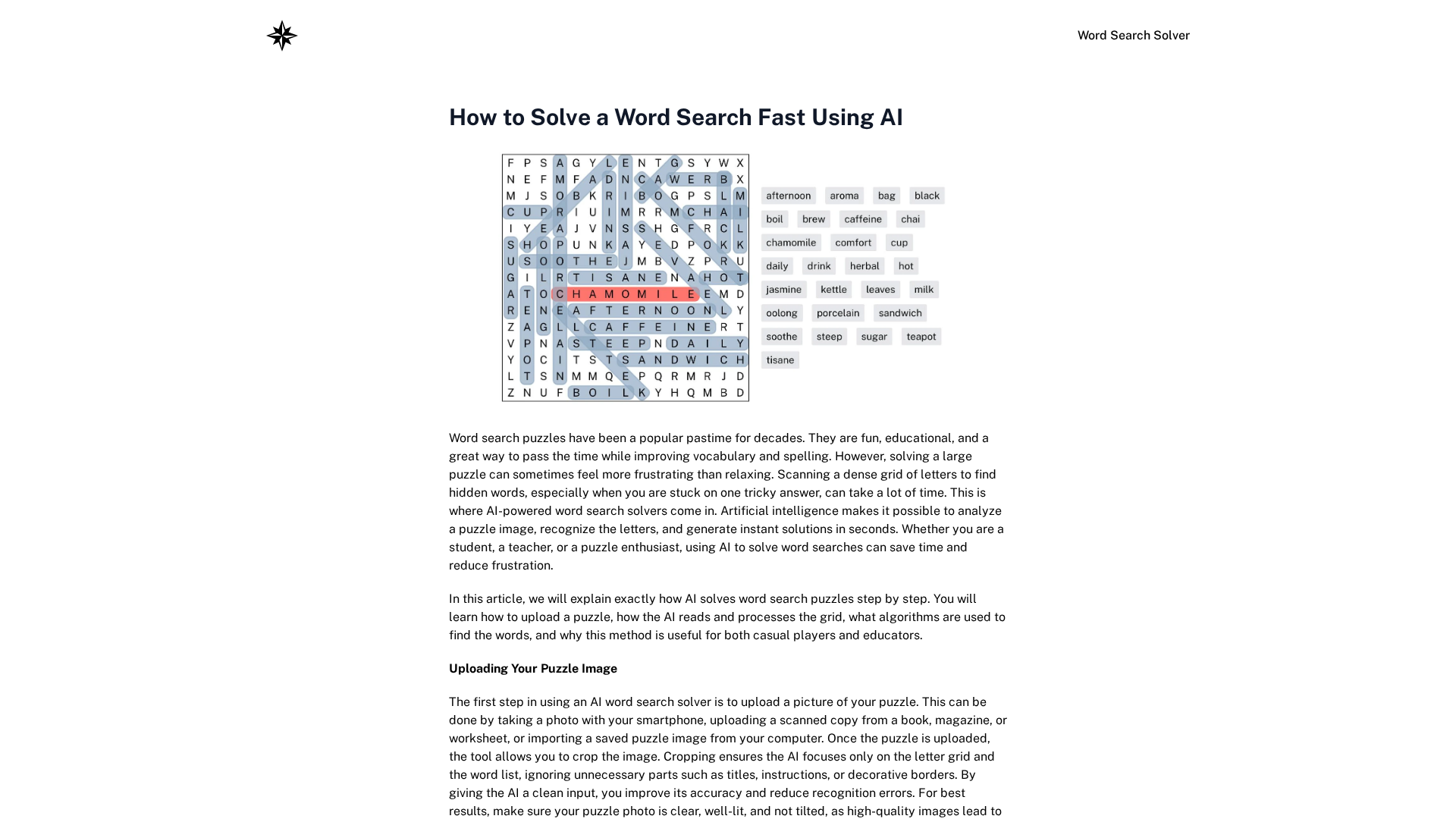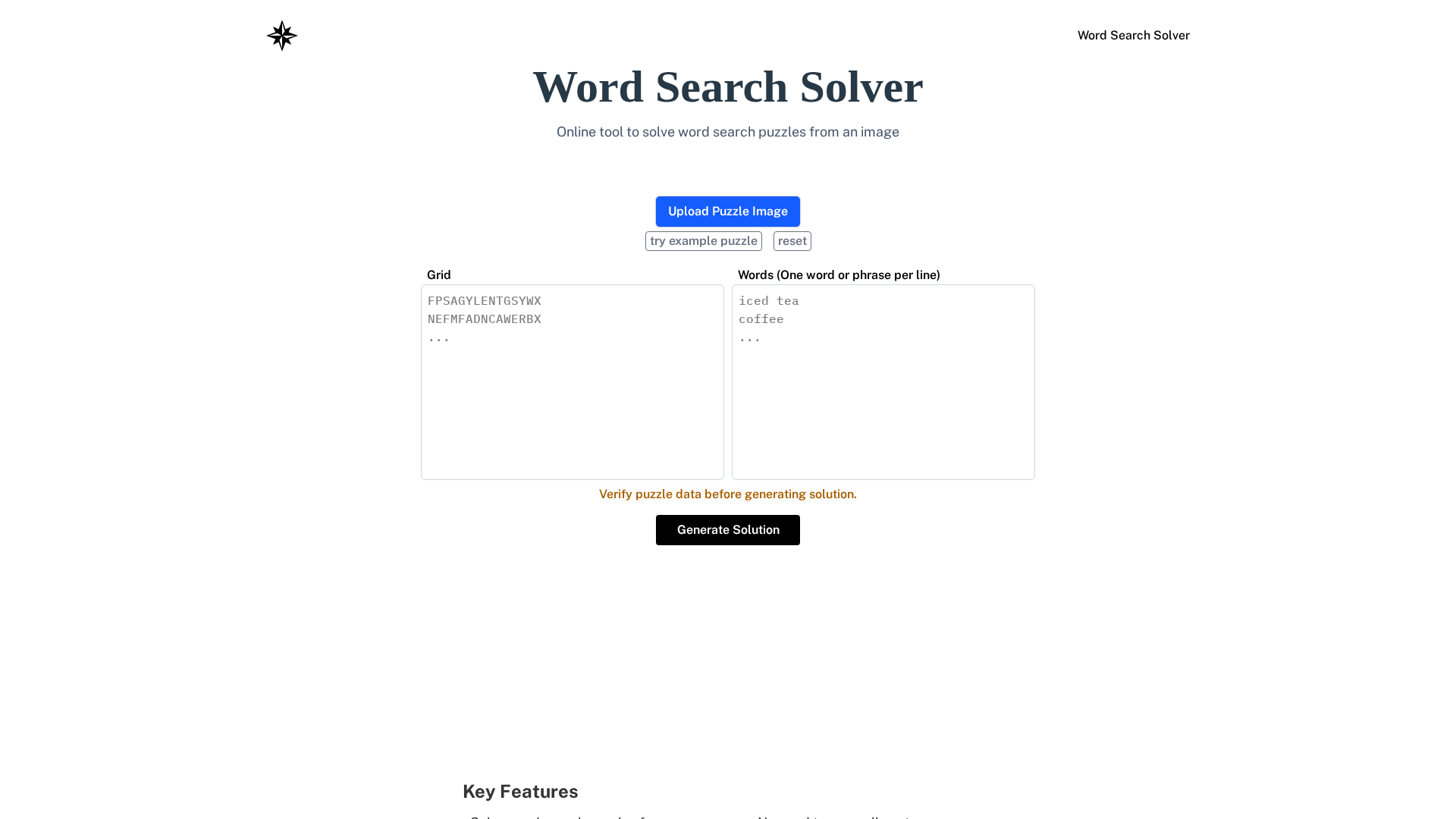 An online, free OCR-based tool that turns a photo of a word search into a solvable grid with the solutions in seconds.