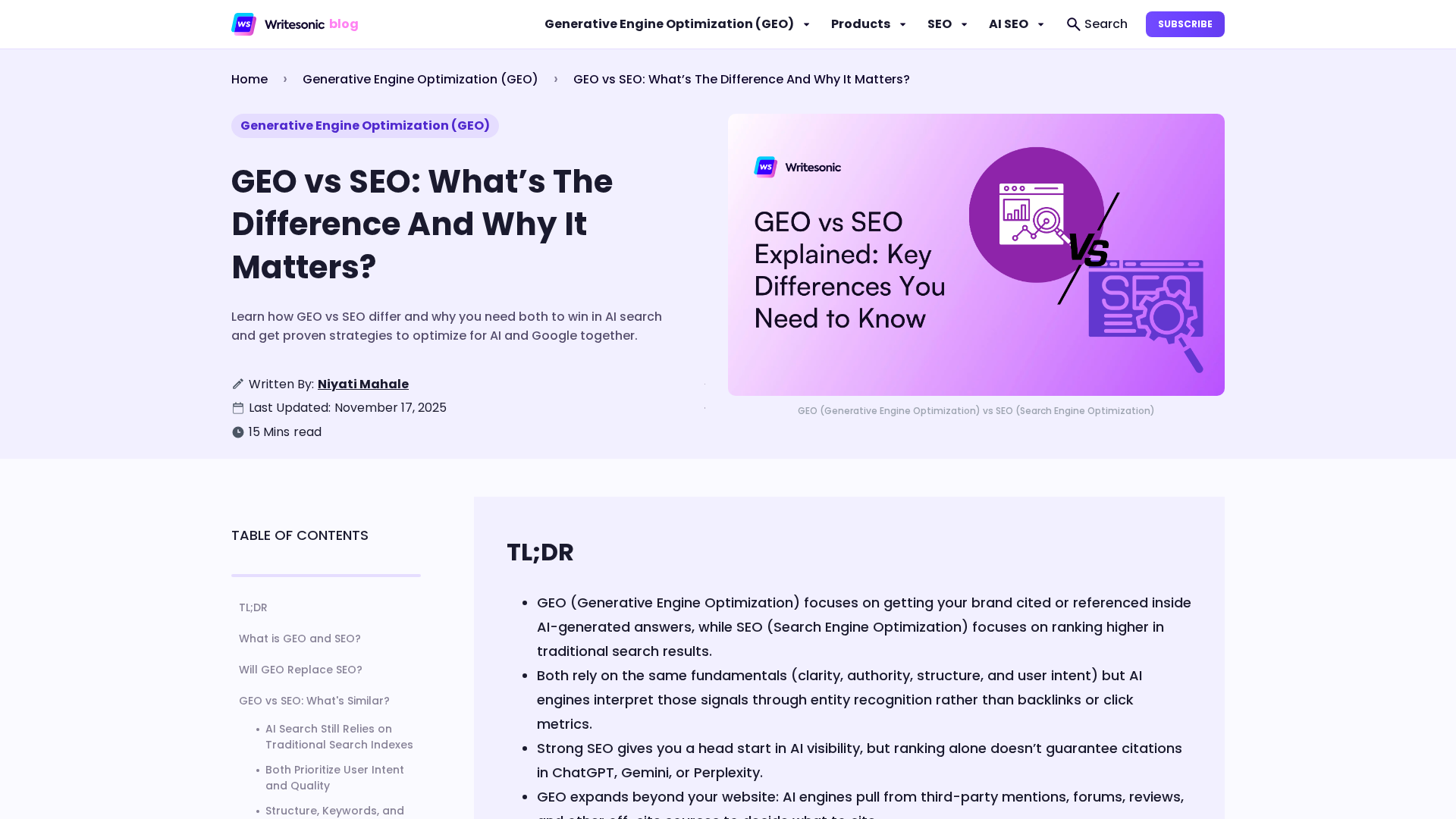 Explains GEO vs SEO, their similarities and differences, and why integrating both is essential for AI-driven and traditional search visibility.