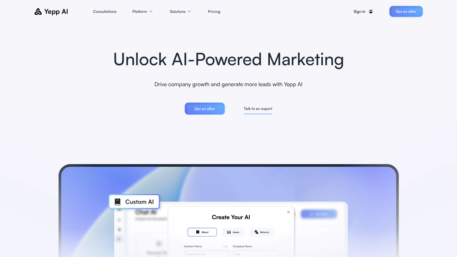 Yepp AI is a Marketing Intelligence Platform that customizes large language models to a company’s data, tone, and buyer personas to automate and scale marketing tasks. It consolidates content creation, campaign management, audience targeting, tone consistency, and analytics into a single modular system. Yepp emphasizes workflow alignment (fine-tuned LLMs, project management, content generation, and publishing) and enterprise-grade security (SOC2/GDPR alignment). Pricing is module-based and tailored to team needs; prospects request a customized proposal. The platform targets agencies and mid-to-enterprise marketing teams looking to speed execution and improve conversion through AI-assisted workflows.