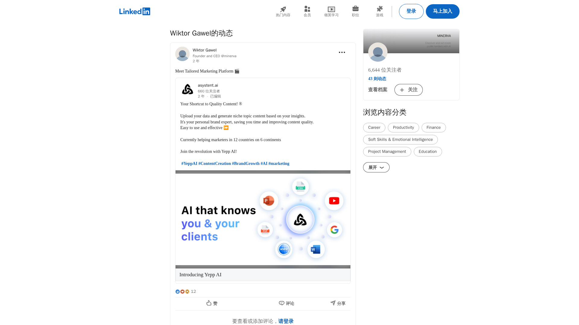 Yepp AI is a tailored marketing platform that turns your data into niche, high-quality content with a personal-brand expert AI.