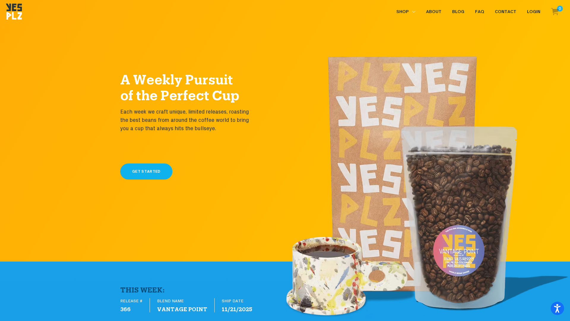 A promotional overview of Yes Plz Coffee's weekly subscription featuring the Front Row Seat blend—four coffees from around the world with new releases each week.