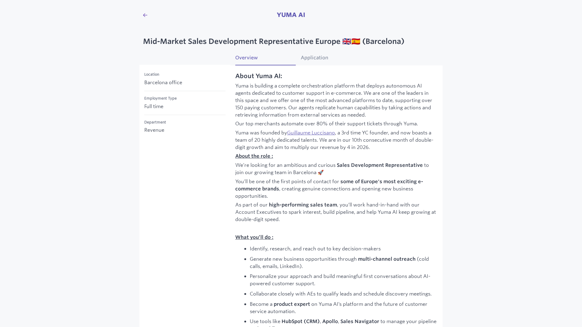 Job listing for a Mid-Market SDR in Europe, based in Barcelona, building and qualifying European sales opportunities.