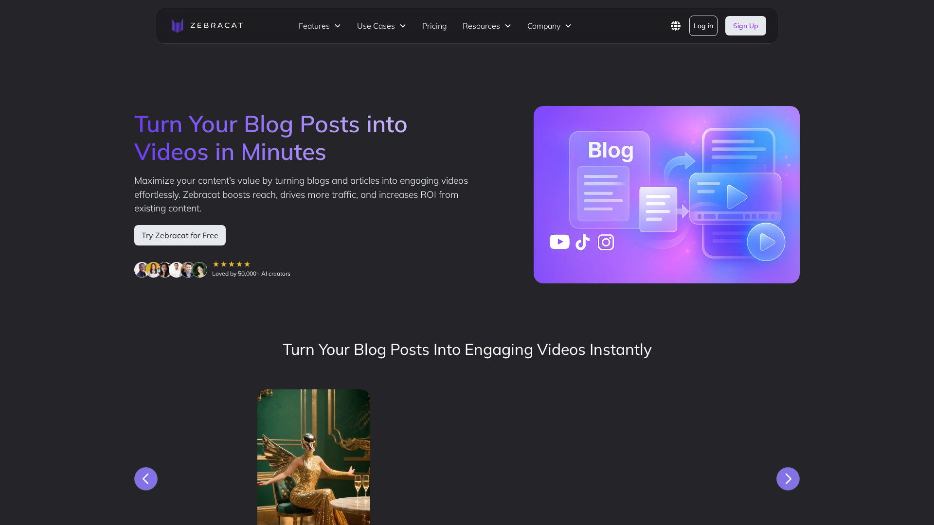 Zebracat quickly converts blog posts into voiceover-ready, brand-tailored videos with customizable visuals, voices, and formats.