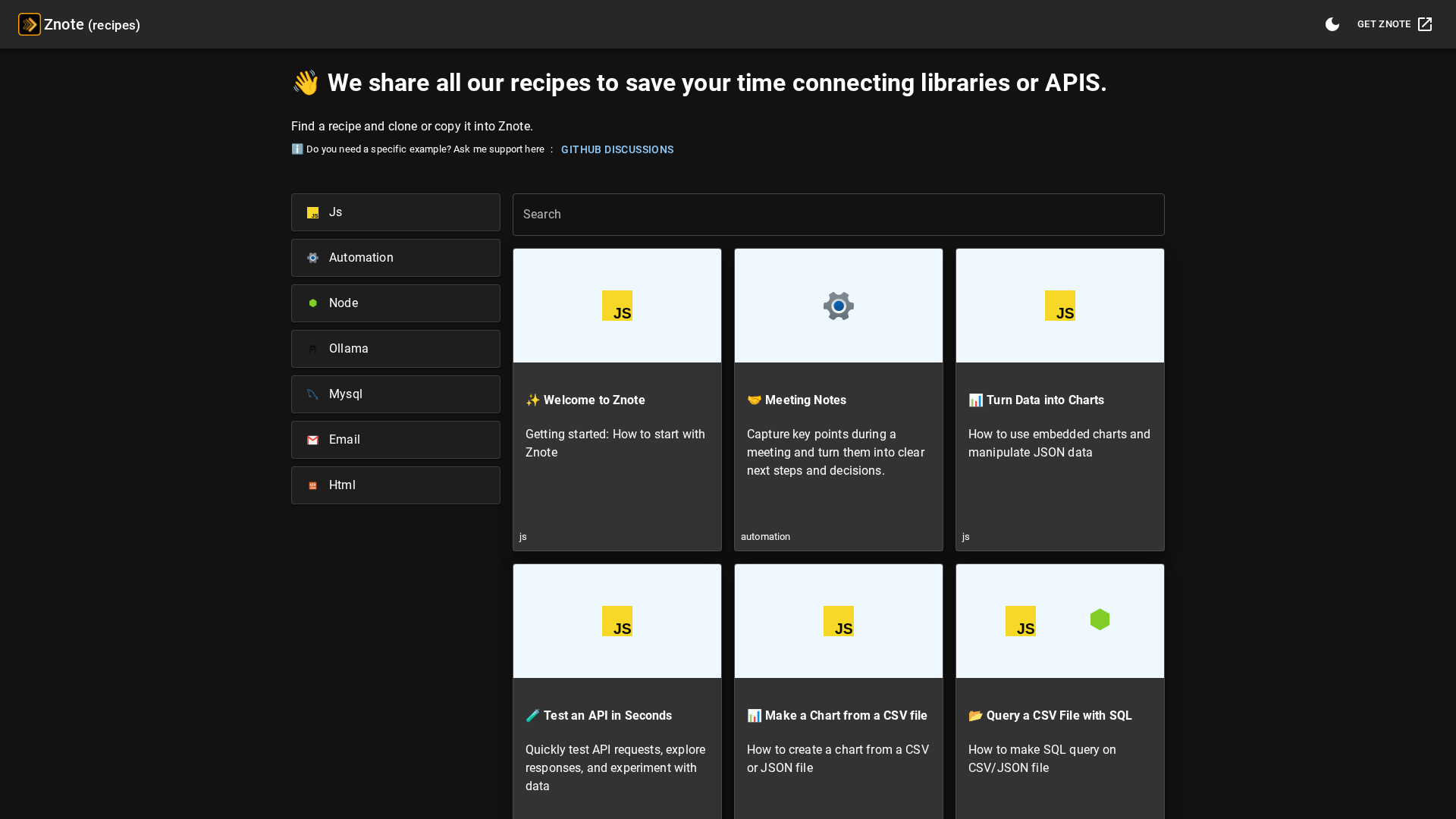 Easily clone reusable recipes in Znote to streamline library and API integrations.