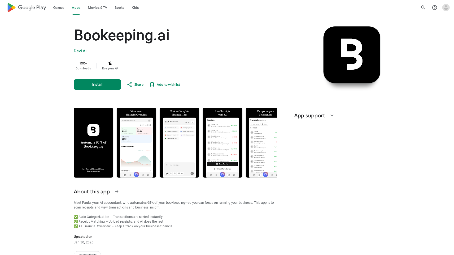 An AI-powered app that auto-categorizes transactions, matches receipts, and provides a financial overview to simplify bookkeeping.