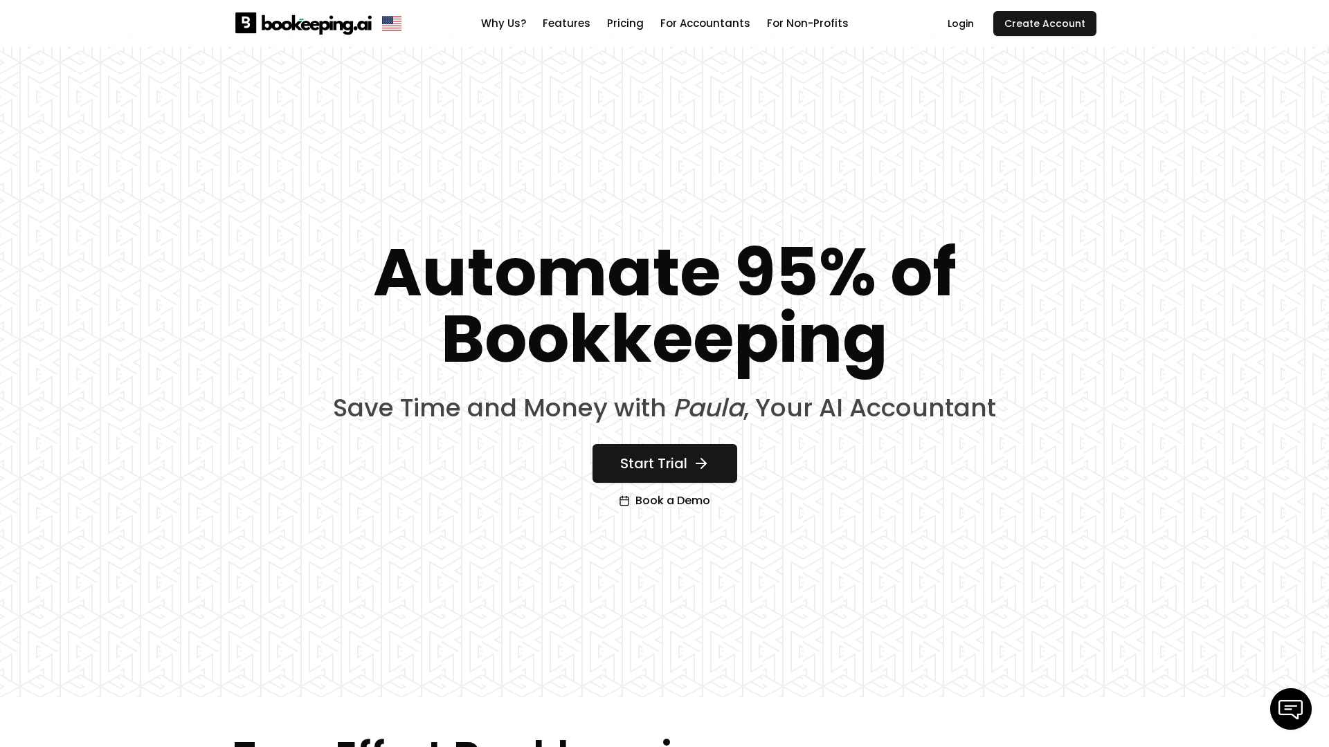 Enterprise page promoting Paula AI Accountant to automate 95% of bookkeeping tasks.