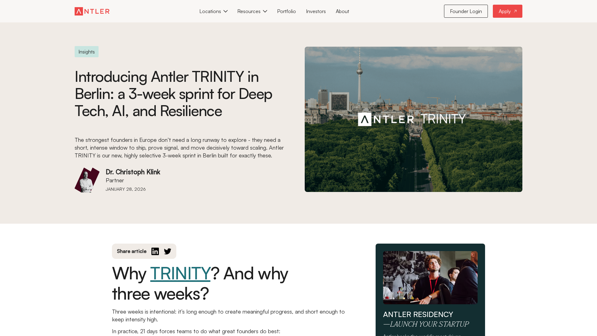 Antler launches TRINITY Berlin—a 3-week sprint to accelerate Deep Tech, AI, and Resilience with a curated cohort and investment-ready outcomes.