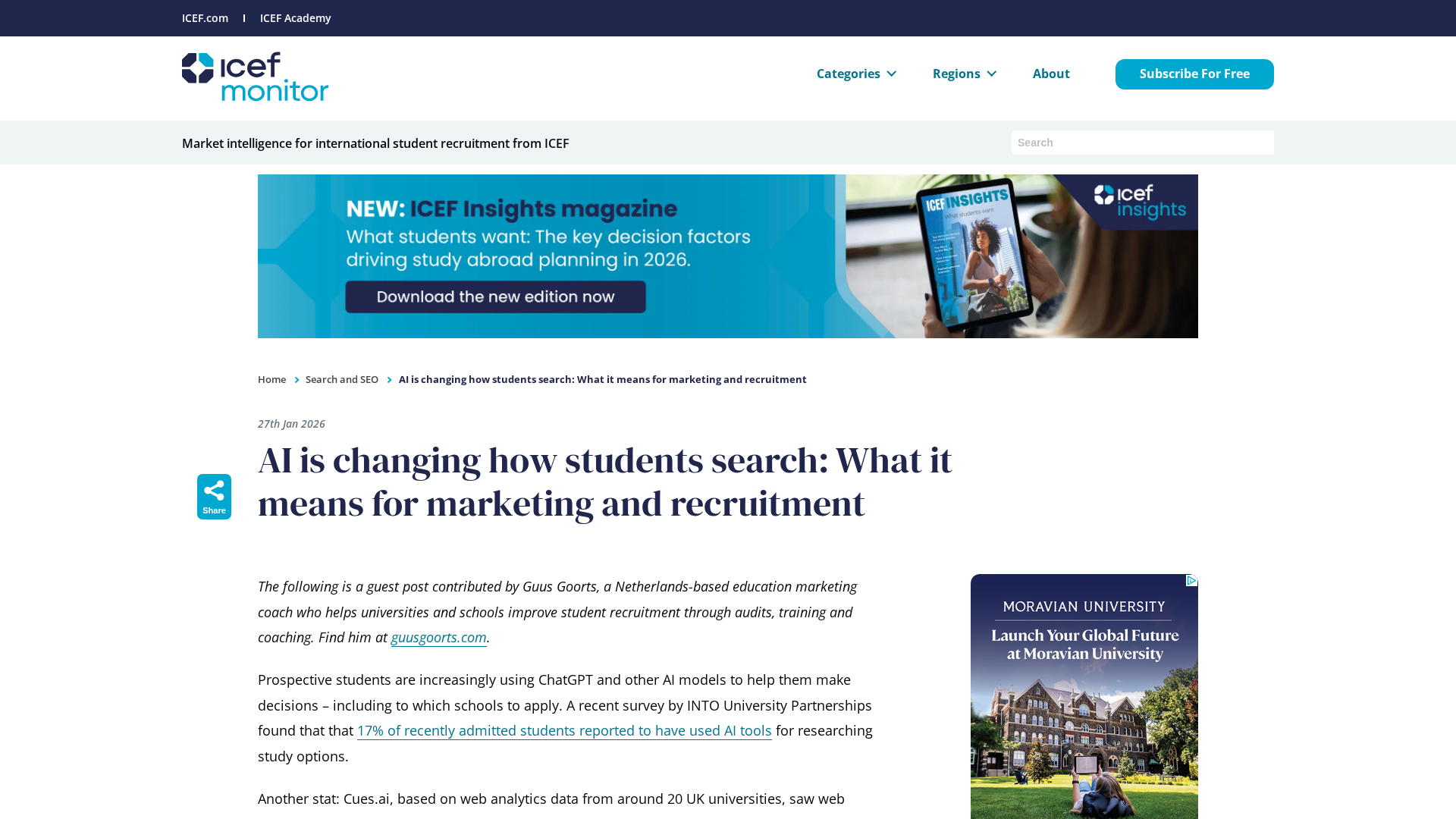 Guest marketing expert explains how AI-driven search reshapes student decisions and how universities should adapt their marketing.