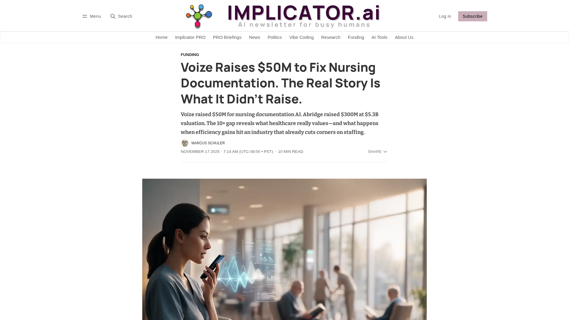 Voize’s $50M raise highlights a stark valuation gap between nursing-focused AI tools and doctor-focused ambient AI in healthcare.