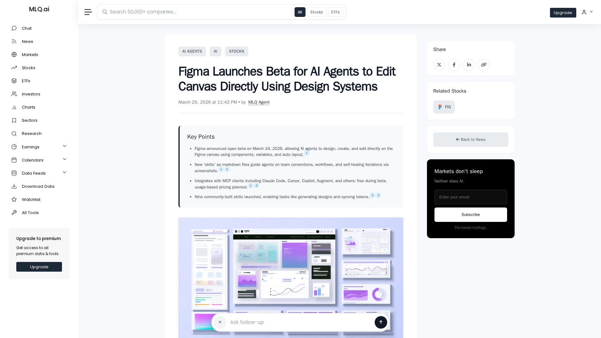 Figma opens an open beta letting AI agents design and edit on the canvas using design system components.