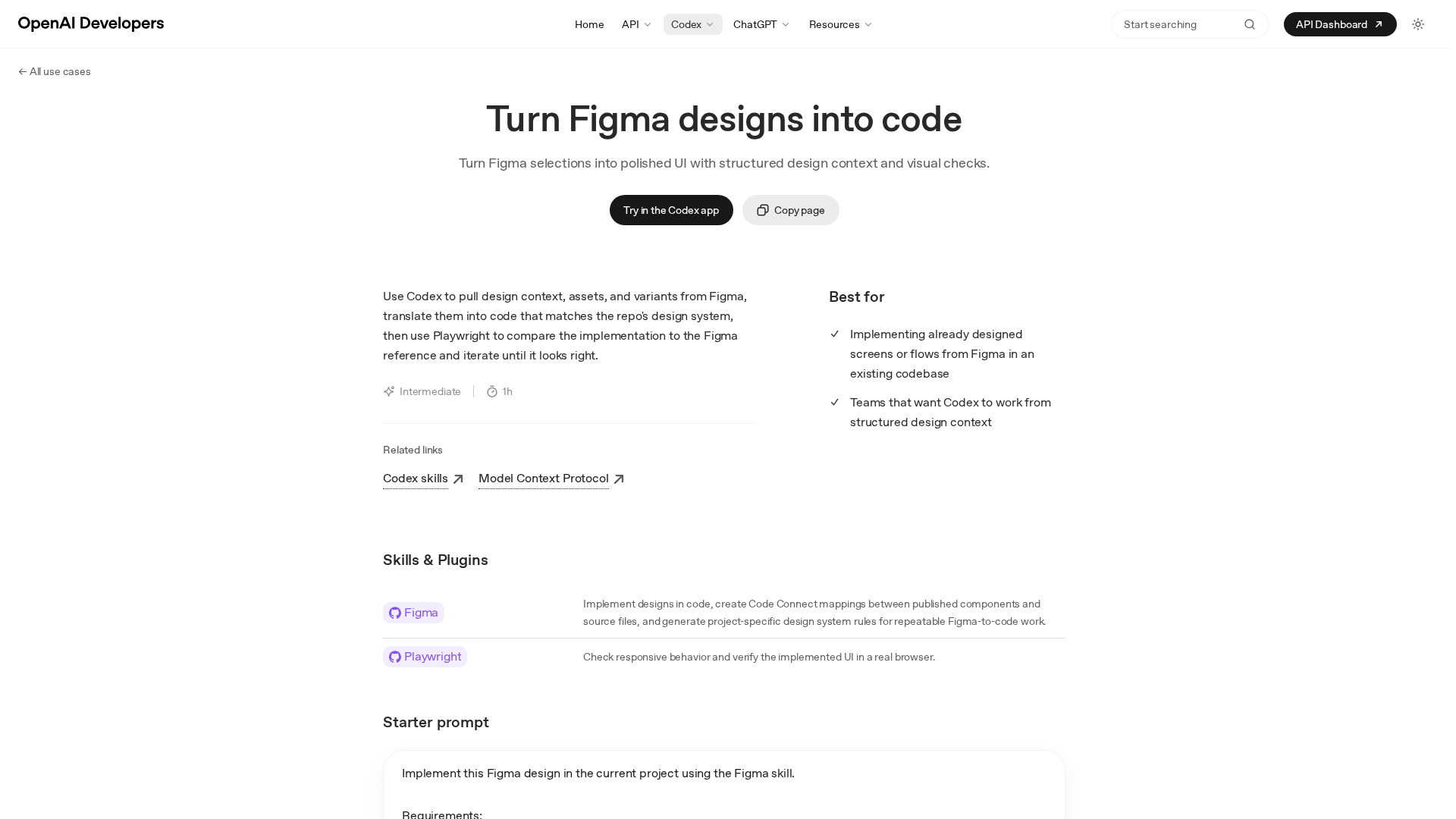 Turn precise Figma designs into production-ready UI by Codex, with design-context, assets, and automated visual checks.