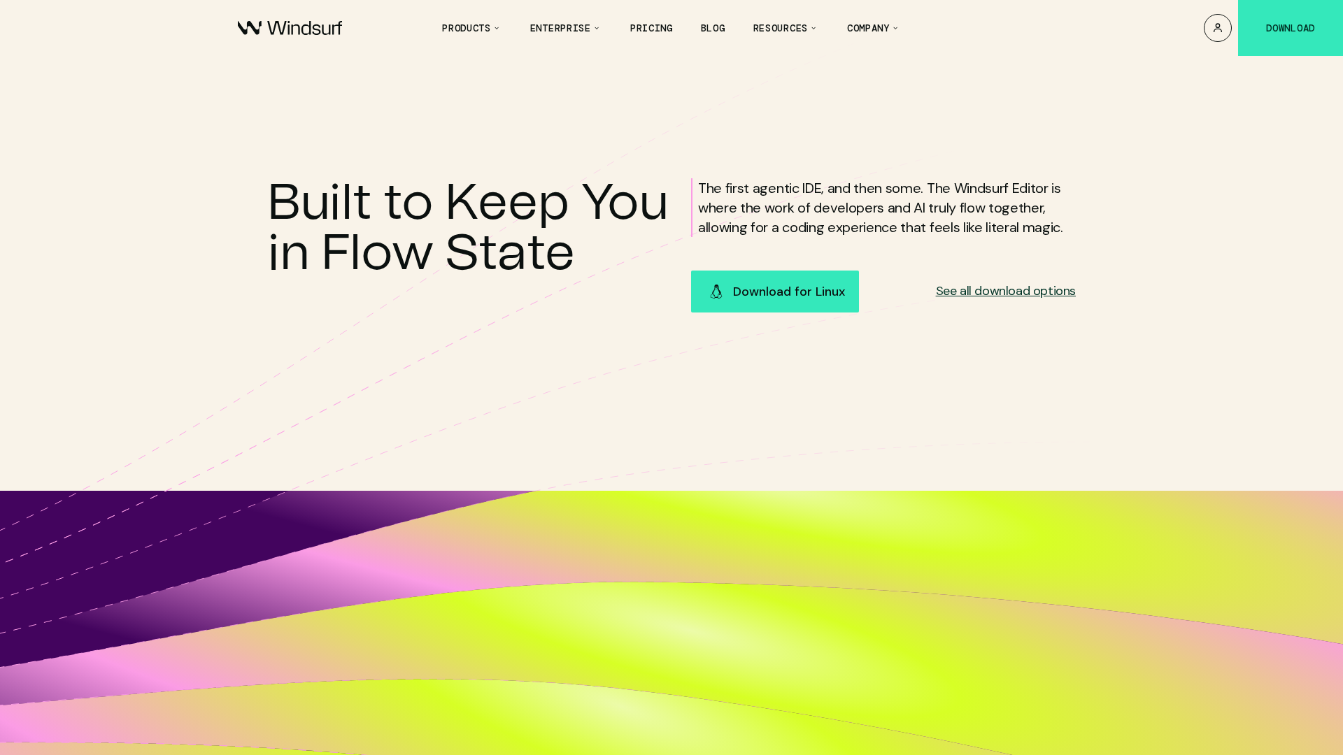AI-native IDE and agentic coding platform (Windsurf Editor) with Cascade agents, live previews, and multi-model support.