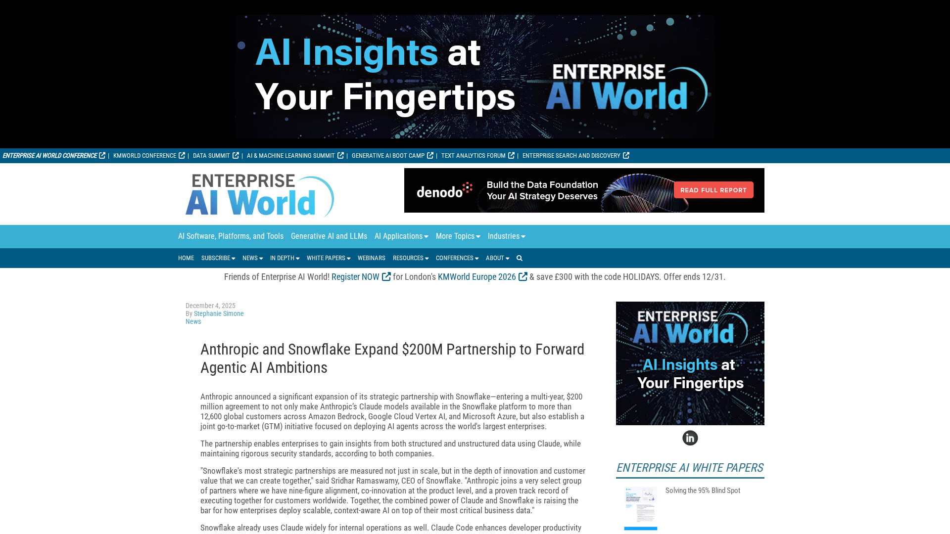 This topic covers the platforms, architectures and tools enterprises use to manage AI-ready data and deliver analytics-driven decisions. As organizations move from experimentation to production, they combine governed data warehouses, multimodal databases, vector stores, analytics/BI engines and agent frameworks to support retrieval-augmented generation (RAG), real-time dashboards, and ML pipelines. Snowflake, Anthropic and other LLM providers are often paired with pipeline and observability vendors to enable secure, scalable model access while preserving data lineage and access controls. Key categories include AI data platforms and data analytics tools. Examples from the current landscape: Domo — an enterprise data platform that automates data preparation, connects hundreds of sources and surfaces real-time insights; Sisense — an embedded BI and AI analytics platform with developer SDKs and marketplace capabilities; Alteryx One — a governance-first, no-code/low-code analytics suite for workflow automation and deployment; Activeloop Deep Lake — a multimodal database that versions and indexes unstructured data and embeddings for RAG workflows; LangChain and related engineering stacks that power stateful agent apps and LLM orchestration; and agent/automation platforms (AutoGPT, Agentverse) plus document-chat tools (ChatwithData) that expose natural-language access to datasets. Trends making this category timely in late 2025 include broader adoption of vector/RAG patterns, emphasis on governance and reproducibility, demand for multimodal and versioned data stores, and growing use of autonomous or agentic workflows. Buyers should evaluate platforms for ML-readiness (vector/embedding support, streaming and versioning), governance and auditability, developer tooling for LLM integration, and operational automation. The result is a heterogeneous stack where data management, model access and analytics converge to support practical, auditable AI applications.