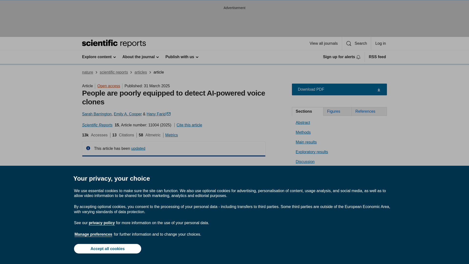 Humans struggle to distinguish AI voice clones from real voices, risking widespread audio deception.