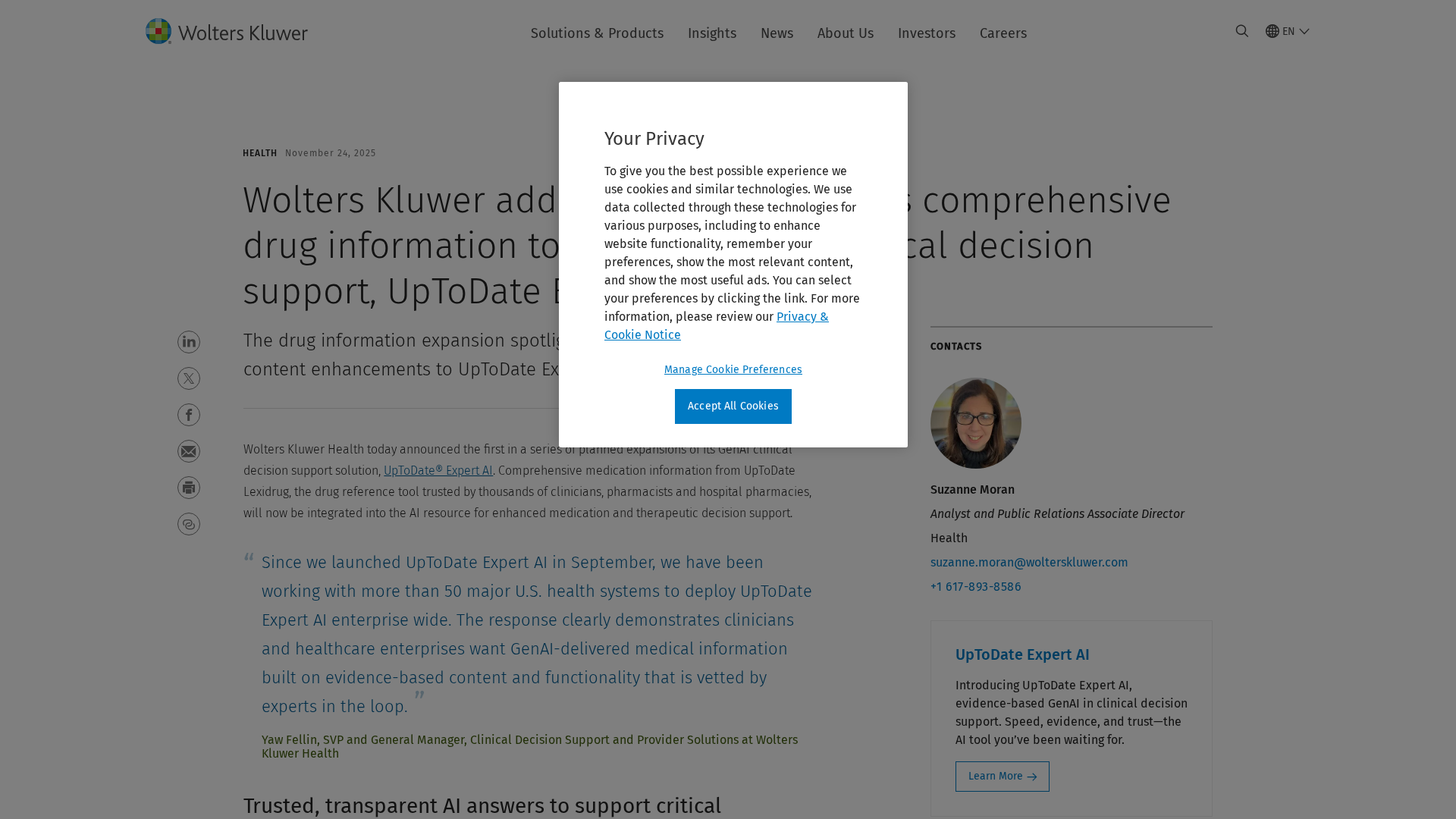 Wolters Kluwer expands UpToDate Expert AI with UpToDate Lexidrug to bolster drug information and medication decision support.