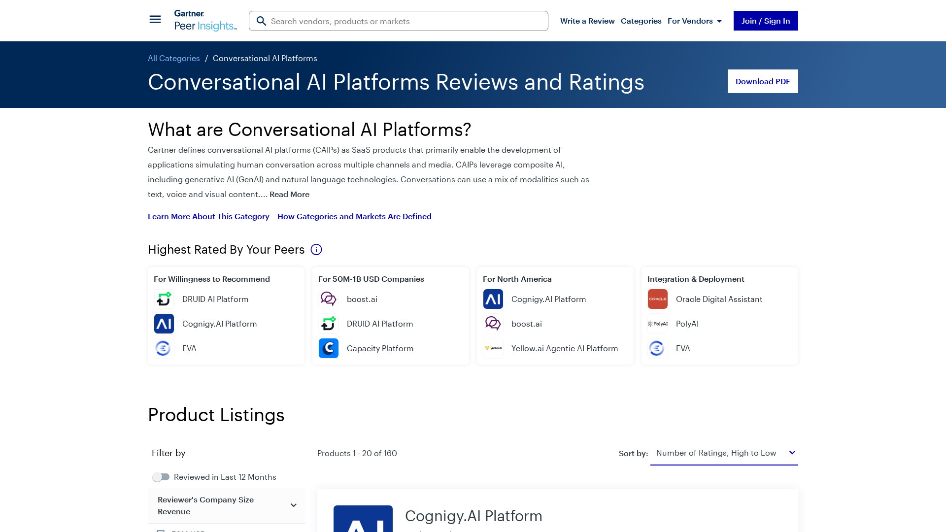 CAPTCHA access blocks this page; Gartner Peer Insights reviews offer buyer-focused insights on conversational AI platforms.