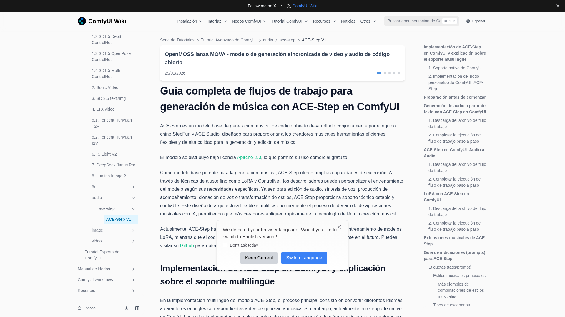 Guía detallada para usar ACE-Step en ComfyUI, con flujos nativos y nodos personalizados para generación musical multilingüe.